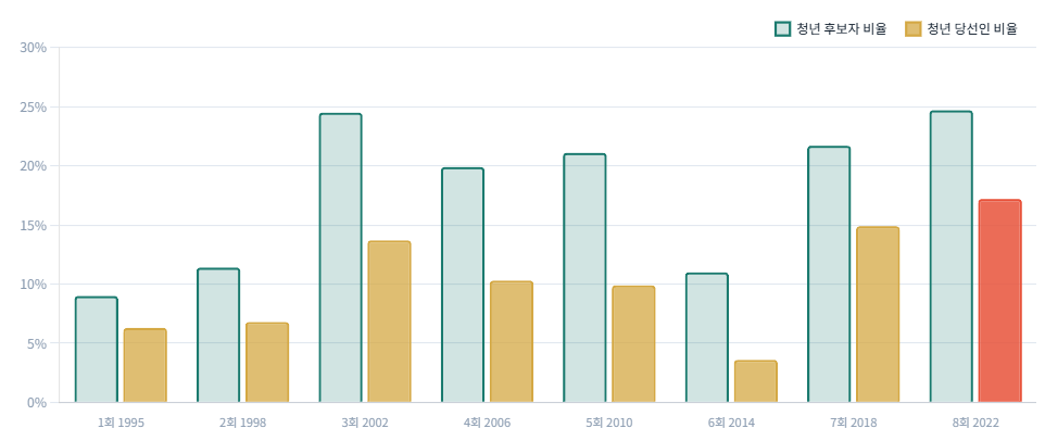 ํ๋ณด์ ๋น์จ vs ๋น์ ์ธ ๋น์จ (1995~2022) |