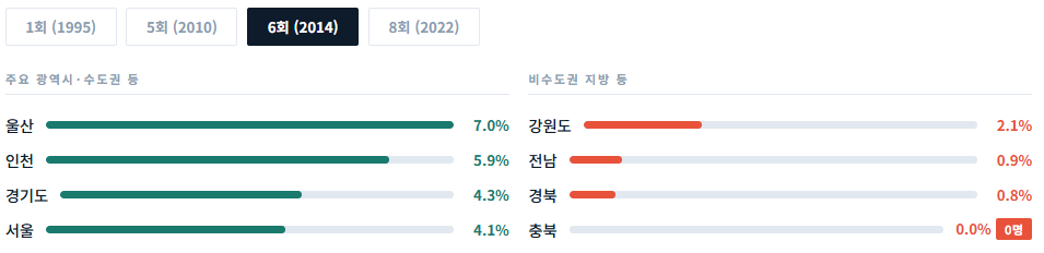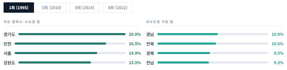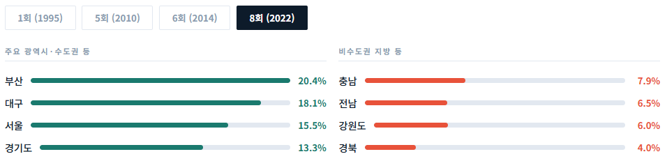 ๊ด์ญ์์(์ยท๋์ํ์์)๋ ๋ค๋ฅด์ง ์์ต๋๋ค. ์ 1ํ์ 14.2%์์ ์ 8ํ์๋ 8.6%(779๋ช