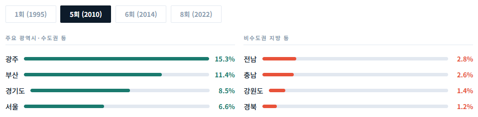 ๋ค์ด ์ง์ญ์์ ์์์ ์ผ๋ก ์ฑ์ฅํ ๊ฒฐ๊ณผ๊ฐ ์๋๋ผ, ๋์ ์ด๋ผ๋ ํน์ํ ์ํฉ์ด ๋ง๋ ํํฅ์ ๊ณต์ฒ์ ๊ฒฐ๊ณผ์ ๊ฐ๊น์ต๋๋ค. ์ด๋ฒ 6.3 ์ง๋ฐฉ์ ๊ฑฐ๋ ๋์ ๊ณผ ๋ฌด๊ดํ๊ฒ ์น๋ฌ์ง๋๋ค. ๊ณผ์ฐ ๊ทธ ์ฒญ๋