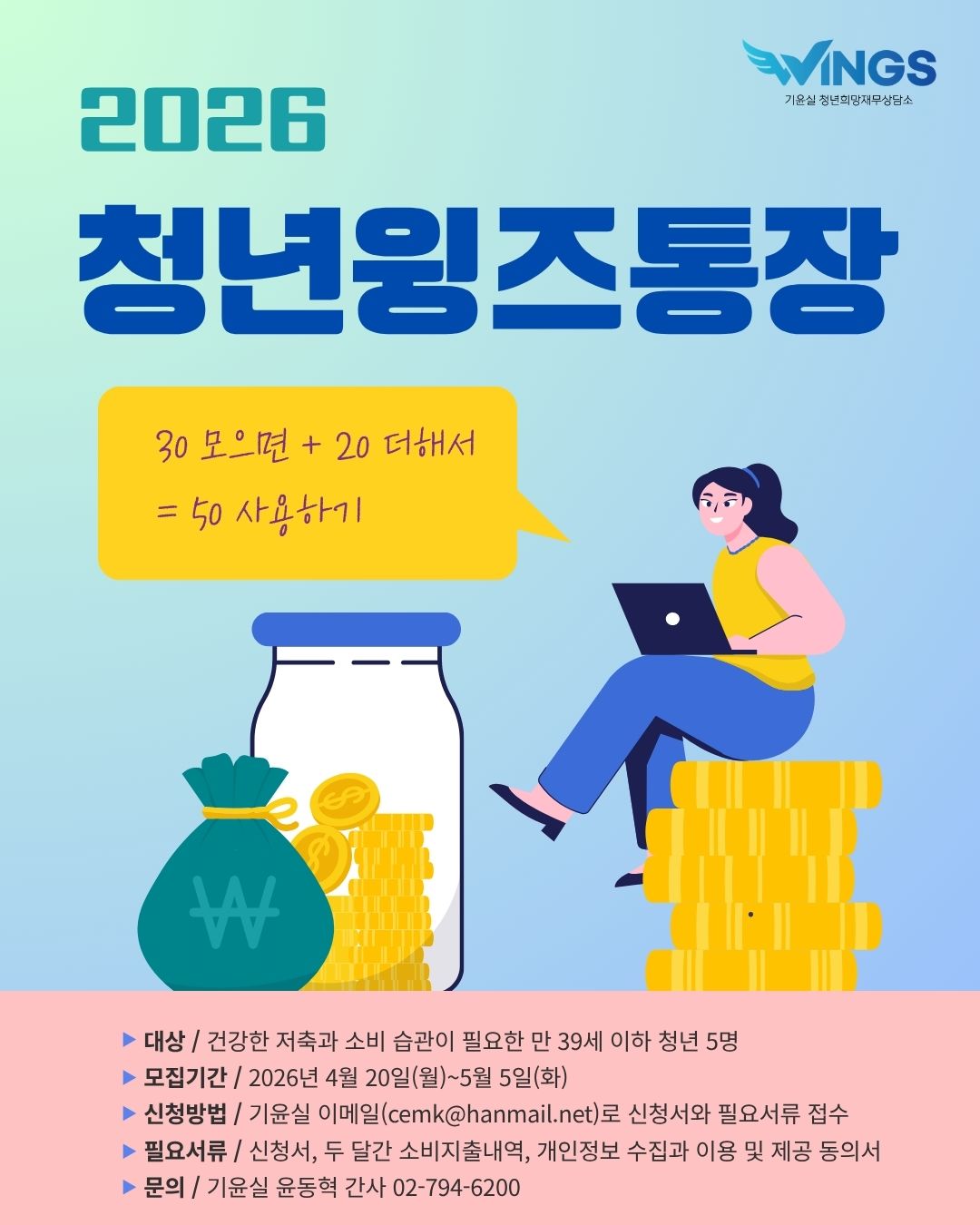 ๋ค์ด ๊ฑด๊ฐํ ์ ์ถ ์ต๊ด์ ๋ง๋ค์ด ์ด๋ก ์ธํ ๊ธฐ์จ๊ณผ ์ฑ์ทจ๊ฐ์ ์๊ณ ์ ์ ํ ์๋น๋ฅผ ํตํด ๊ฒฝ์ ์ ์์กด๊ฐ์ด ๋์์ง๋๋ก, ์ ์ฒญ์๊ฐ 5๋ง ์์ฉ 6๊ฐ์๊ฐ ๋ง๊ธฐ ์ ์ถ ์ ์์ฆ์์ 20๋ง ์์ ๋งค์นญํด ์ด 50๋ง ์์ ๋ง๋ค๊ณ 30~50๋ง ์์ ์ ์ ํ ์๋น๋ฅผ ํ ํ ๋ด์ฉ์ ๊ณต์ ํ๋ ๋ฐฉ์์ <์ฒญ๋